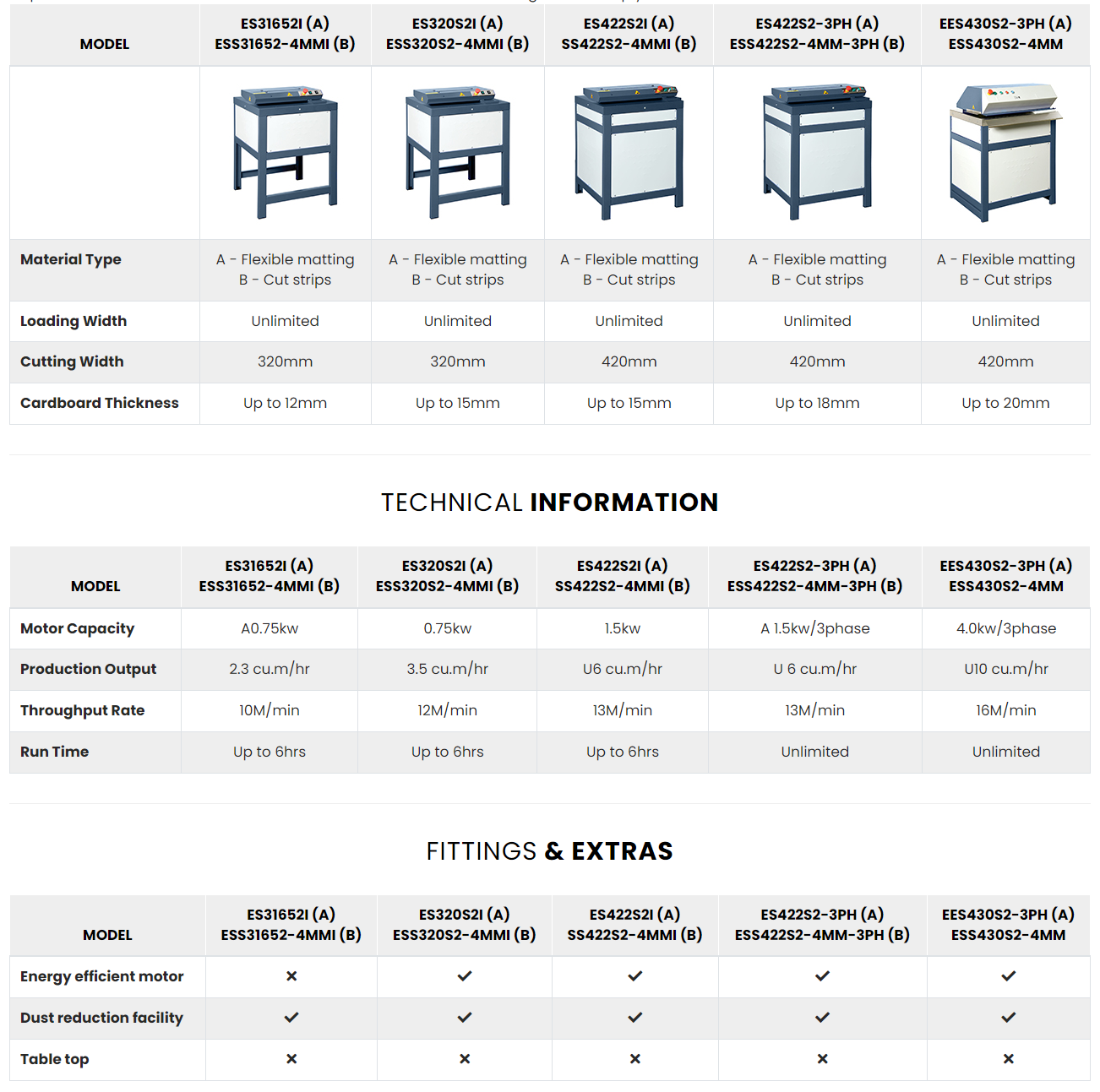 The carton shredders in our range may look similar, but there are a number of factors to consider before deciding which model best suits your requirements. Our cross-reference chart shows the main variations at a glance to help you.
